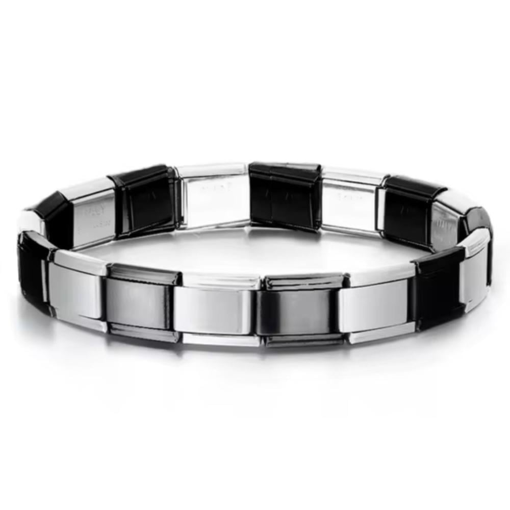 اسوارة اسود مع فضي سوار أنيق و ناعم اسوارة رفيعة مصنوعة من الستانلس ستيل مقاومة للصدا و الماء لون لايتغير