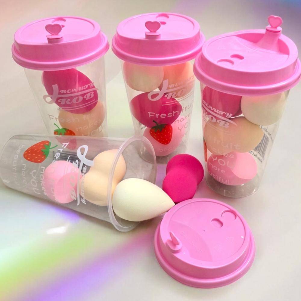 كوب فيه 4 قطعة بيوتي بلندر في علبة كافيهمجموعة اسفنجات مزج المكياج الجافة والرطبة من قطع من الميكاكوز، اسفنجة مزج كريم الاساس لكريم الاساس والكونسيلر والبودرة والكريم والمكياج السائل، ناعمة وقابلة لاعادة الاستخدام